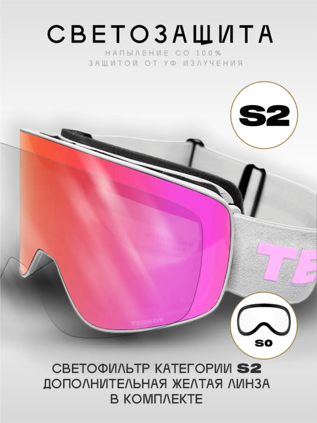 - 2 двойные линзы в комплекте: для пасмурной погоды, для гор