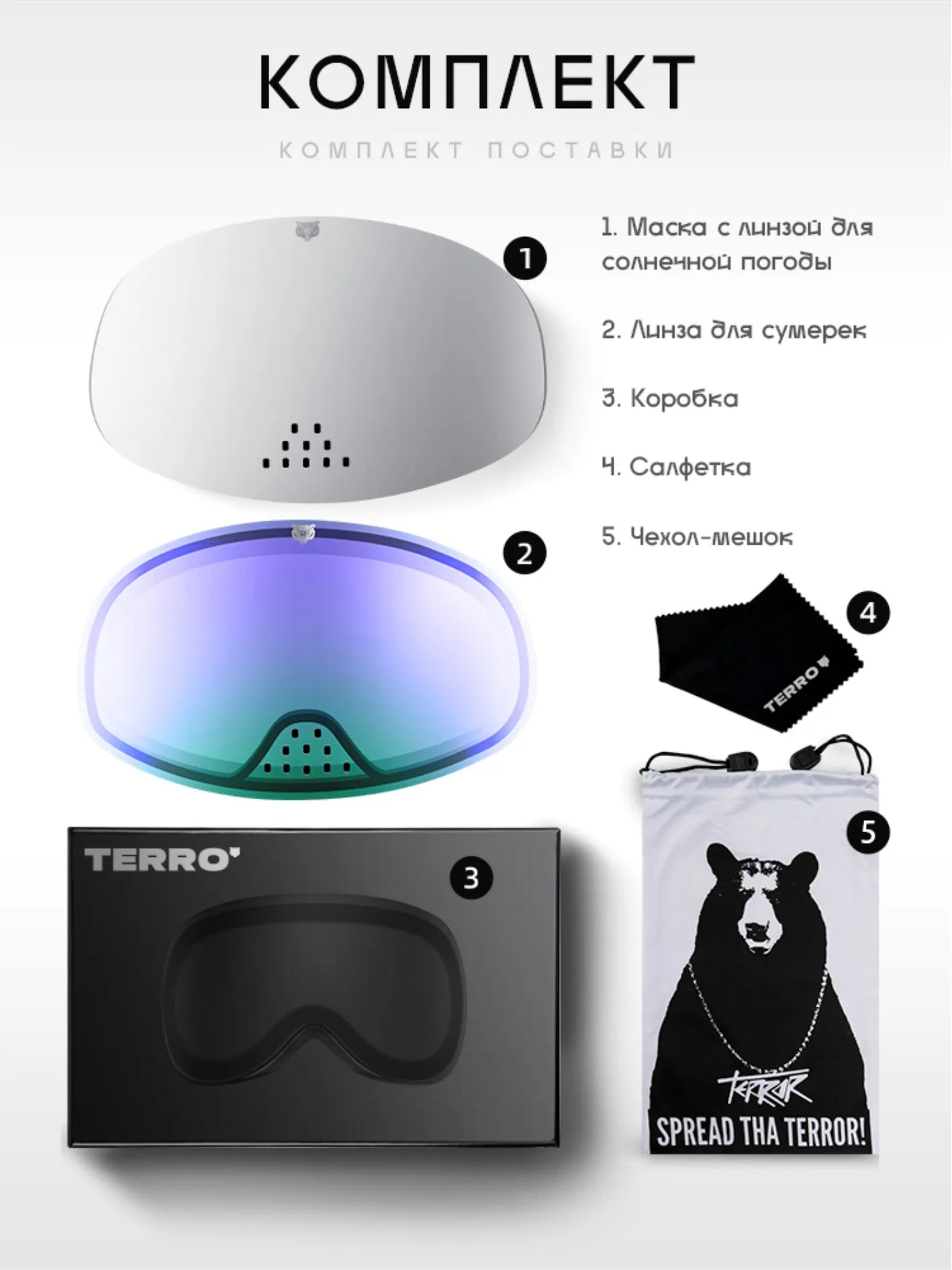 - 2 двойные линзы в комплекте: для пасмурной погоды, для гор