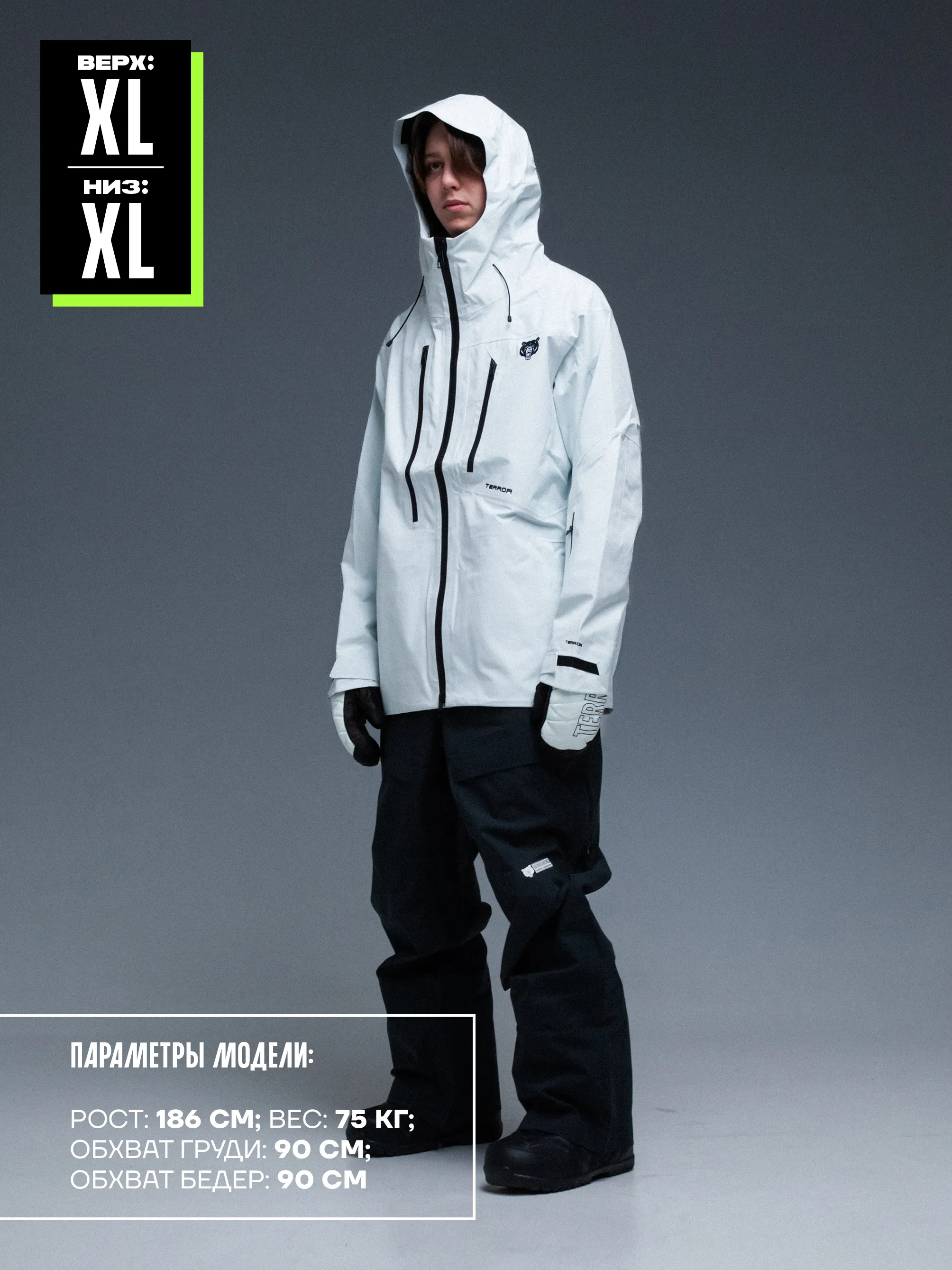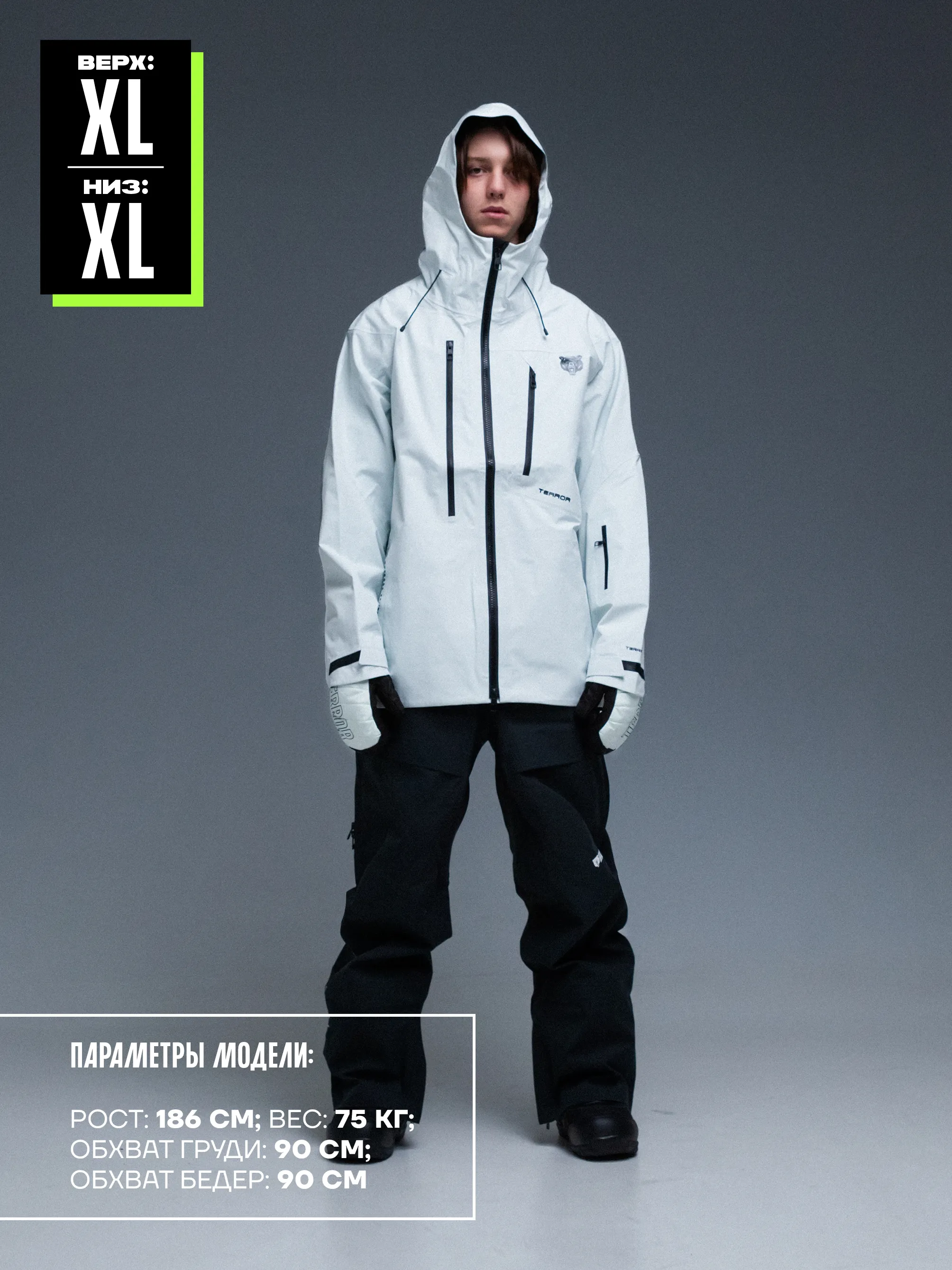 Высокотехнологичная куртка - настоящий полноценный третий слой. Функциональная надежная и защищающая от внешних факторов райдера во время катания в паудере, парке: на холоде и ветре. Это новое слово в одежде TERROR!