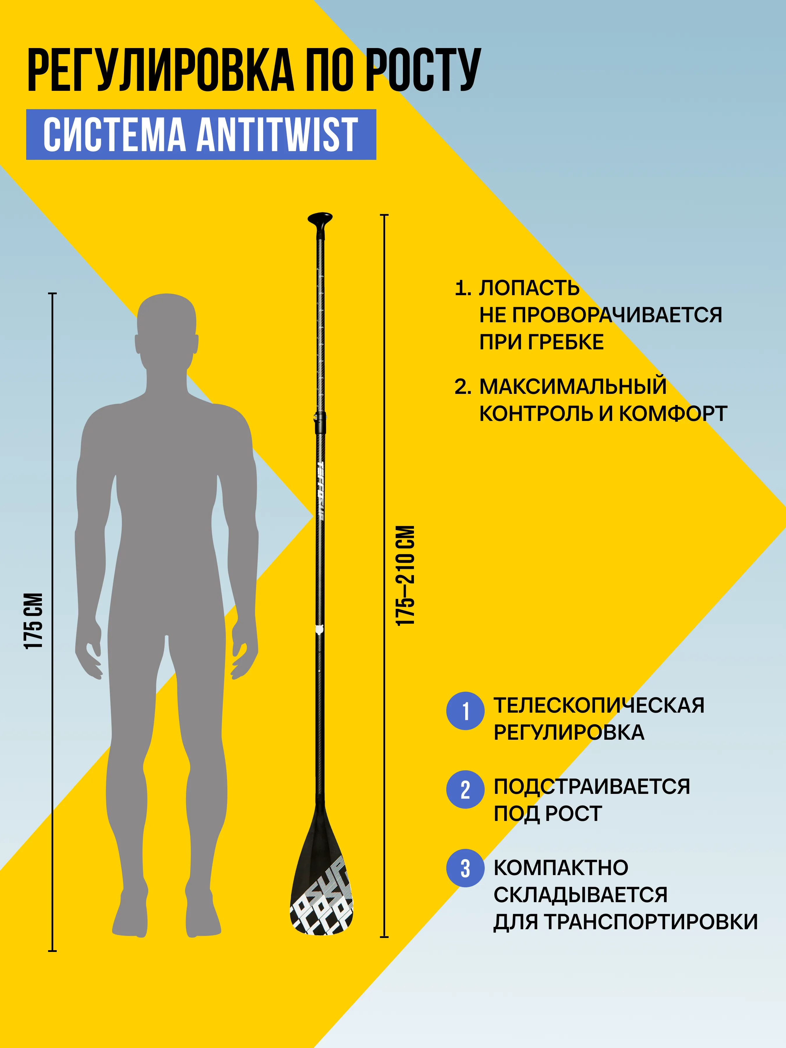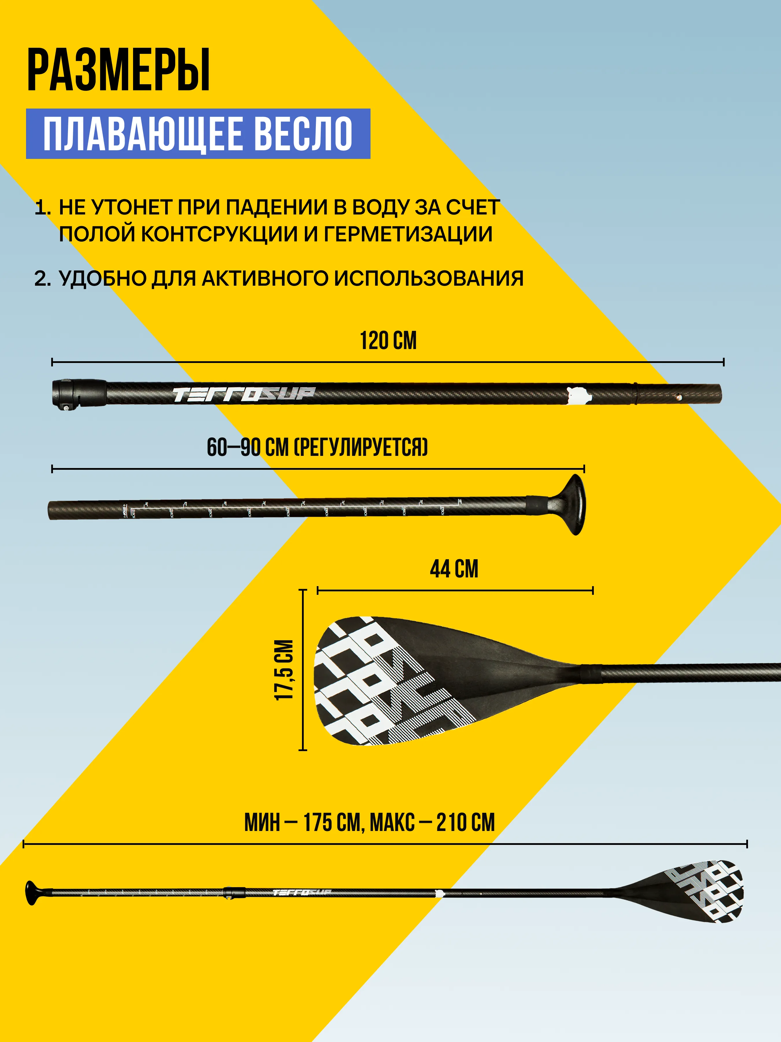Складное карбоновое весло с пластиковой лопастью.