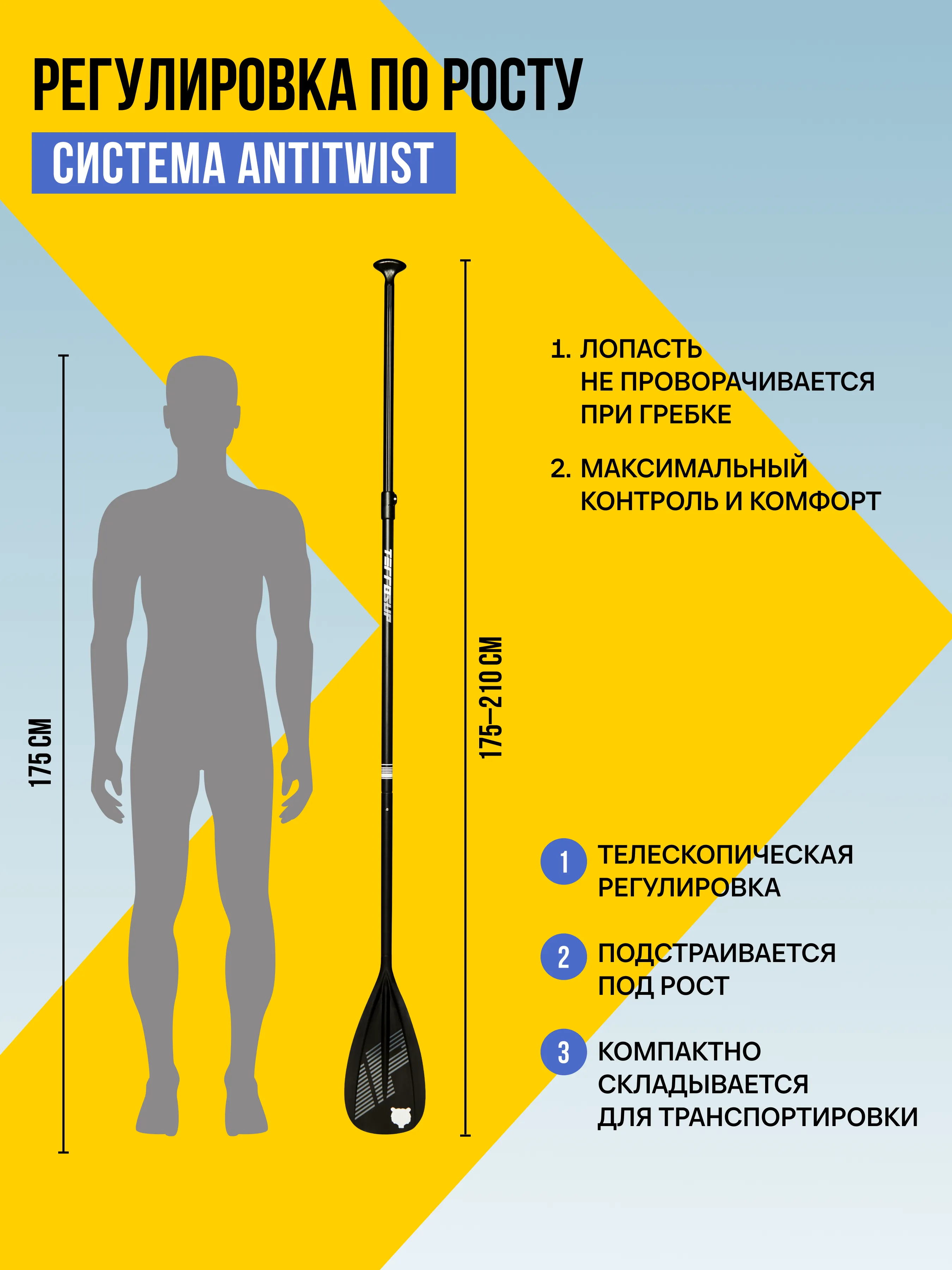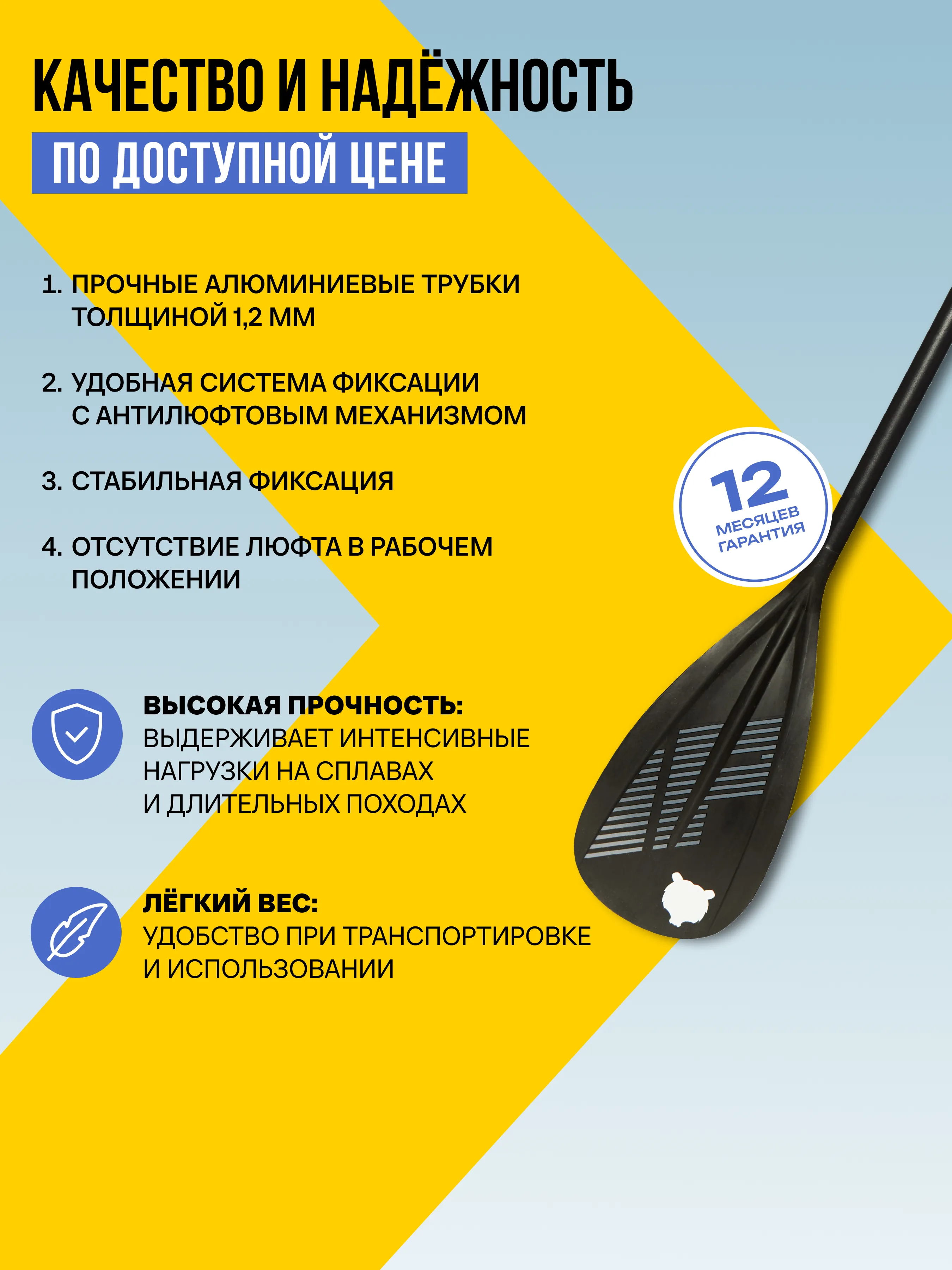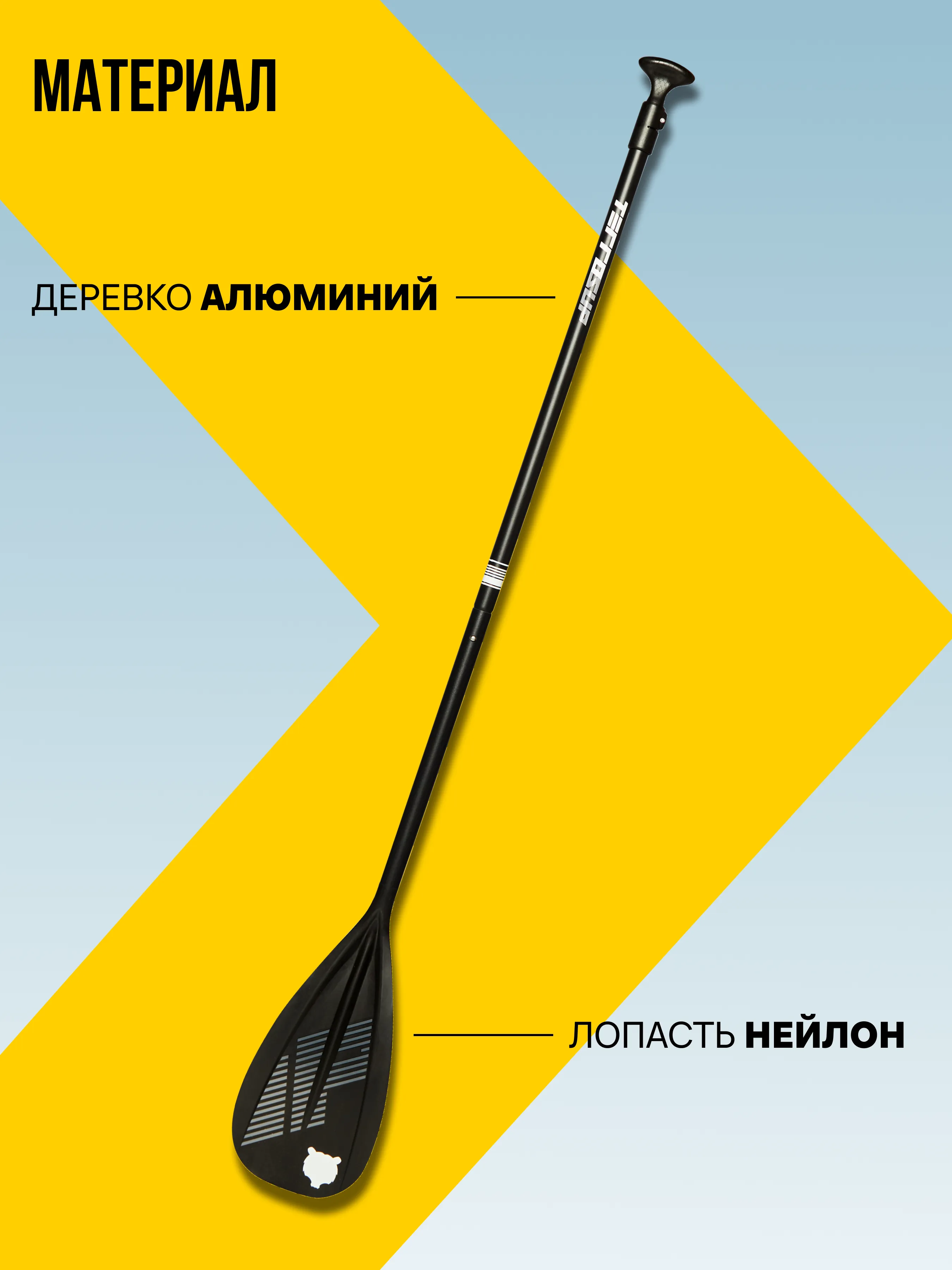 Складное алюминиевое весло с PP вставками и неизменным логотипом бренда.
