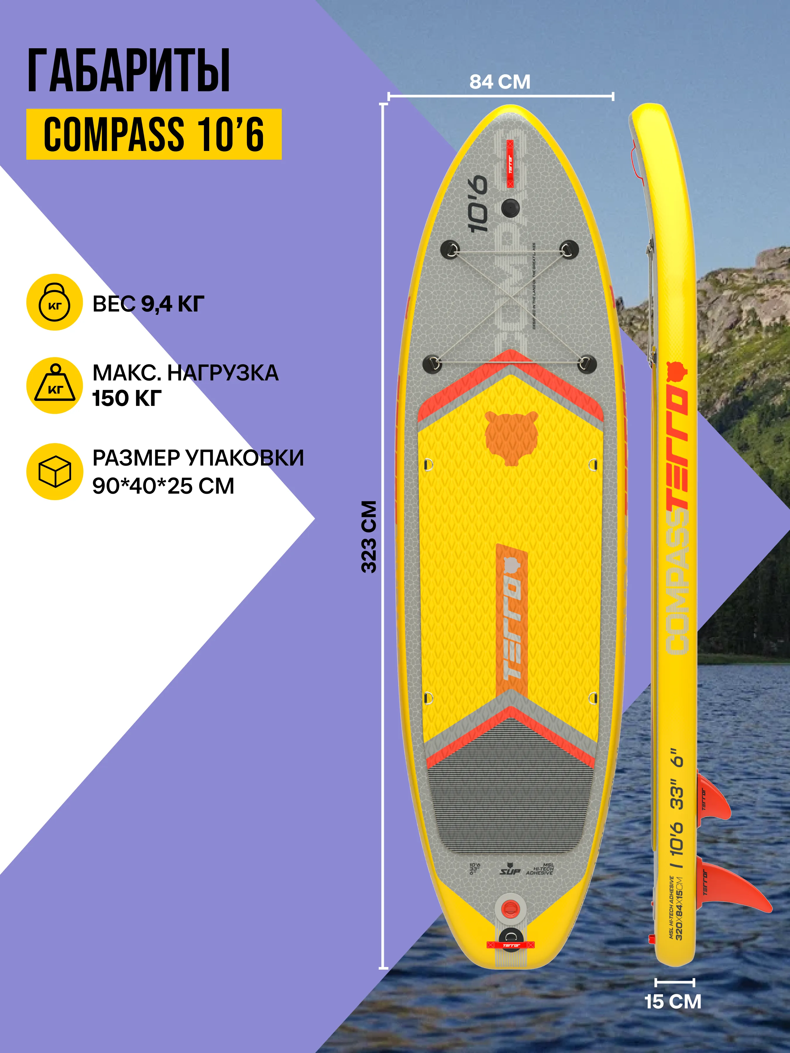 Сапборд COMPASS 10'6*33"*6" Yellow