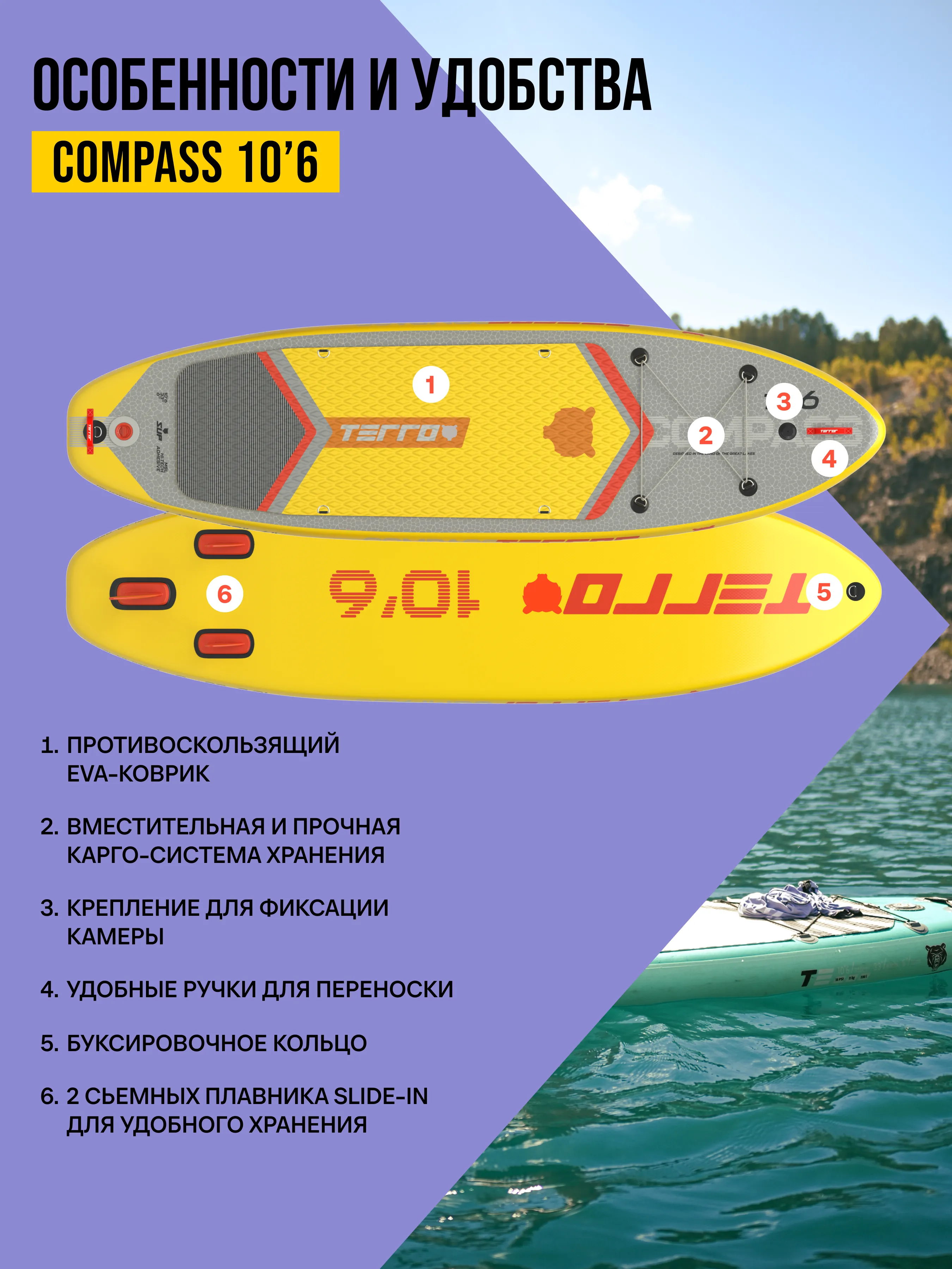 Размер 10’6 - наиболее распространённый размер для катания в водоемах и реках.