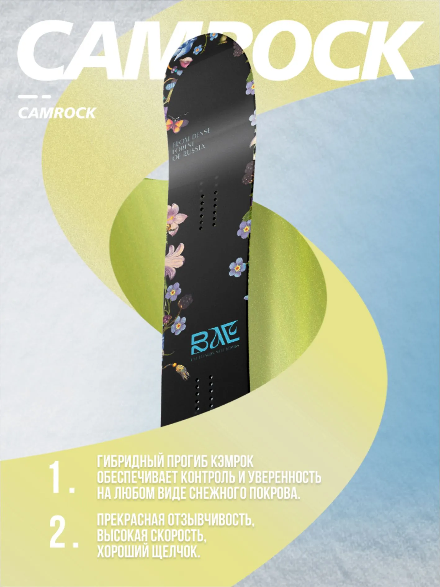 В наши дни парковый сноубординг завоевывает всё большую симпатию среди женщин, а вместе с ней в каталоге нашего бренда появляются и новые доски. Например, модель BAE — настоящий All Mountian сноуборд для склона, парка и отличного настроения. В арсенал доски входят сердечник из тополя, усиленный стекловолокном Tri-Ax и карбоновыми стрингерами, прогиб CamRock, а также прочный топшит из пластика PBT с защитой от ультрафиолета и экструдированный скользяк, который не требует особого ухода, а при повреждении — дорогостоящего ремонта.