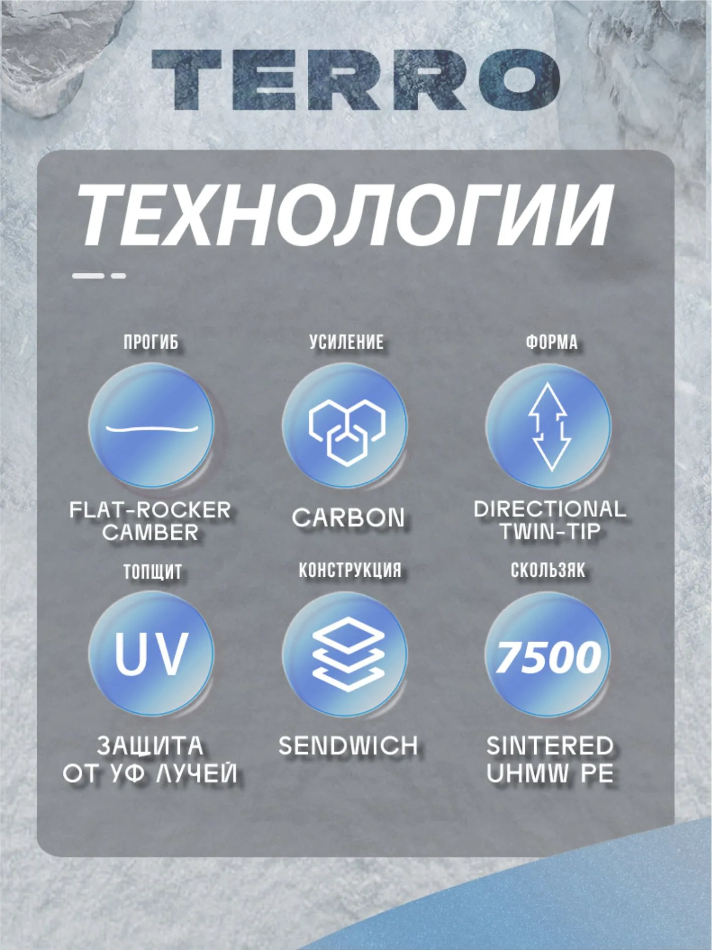 из высококачественного тополя усилен буковыми вставками, триаксиальным стекловолокном и крестообразными карбоновыми стрингерами, увеличивающие продольную жесткость сноуборда, а для улучшения контроля доски на обледеневшей поверхности инженеры нашего бренда добавили волнистые канты Fast Wave.