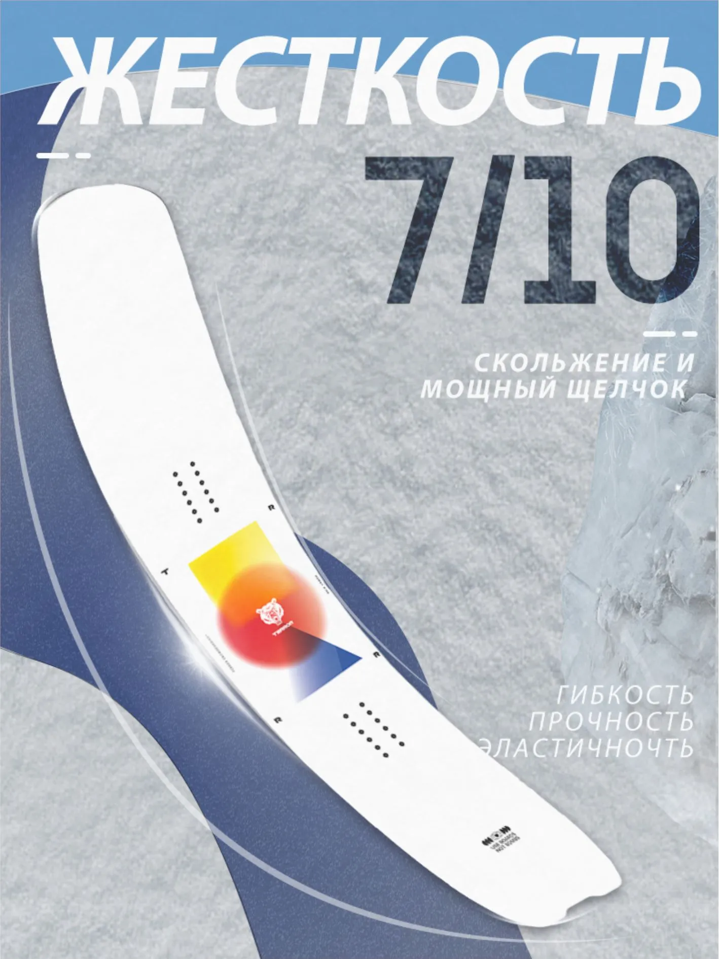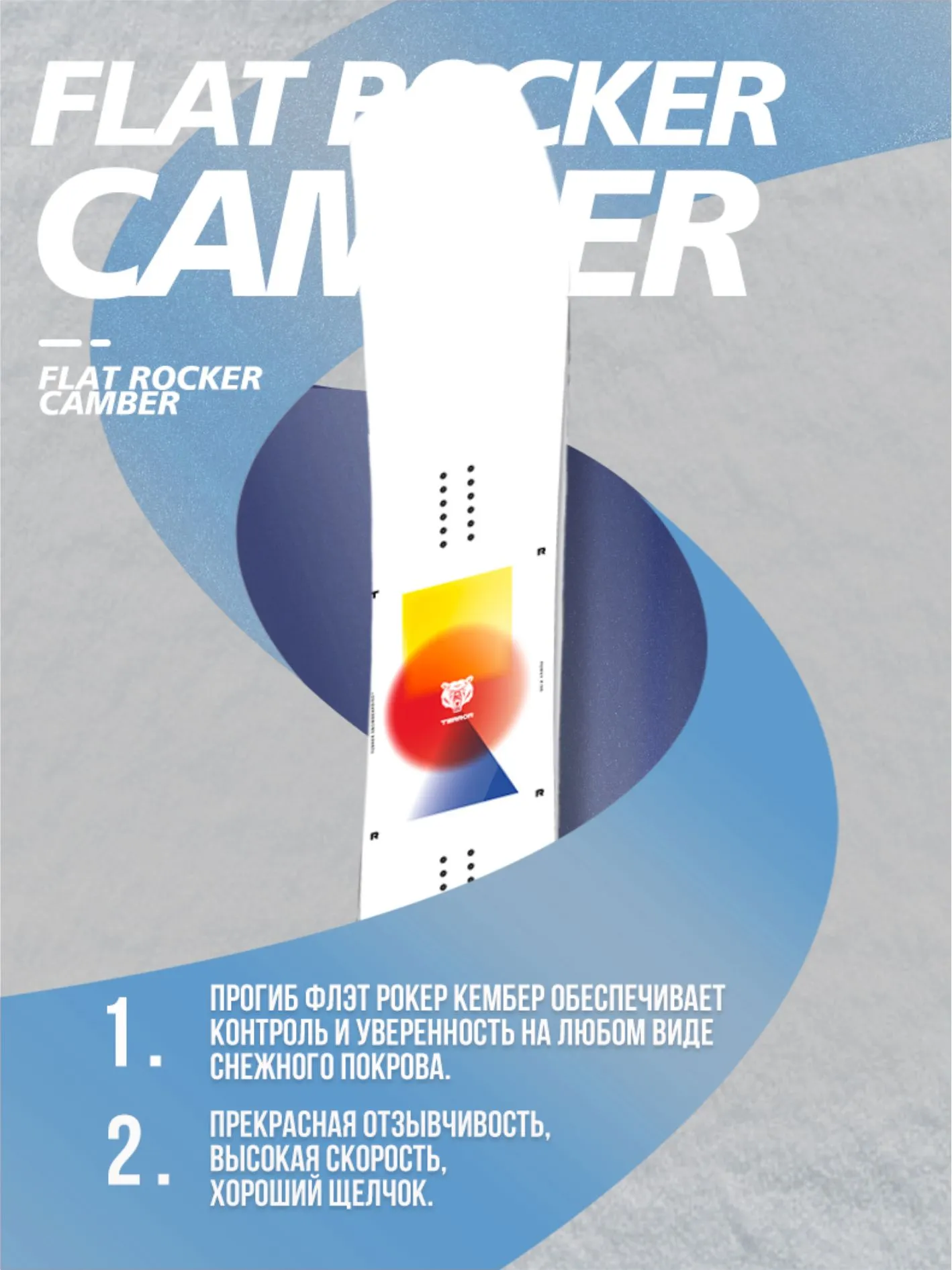 Power создан для того, чтобы рассекать на большой скорости по вельвету и с легкостью всплывать в глубоком снегу. Высокий контроль доски и проходимость в паудере обеспечивает классический обратный прогиб; вдобавок, ее сердечник