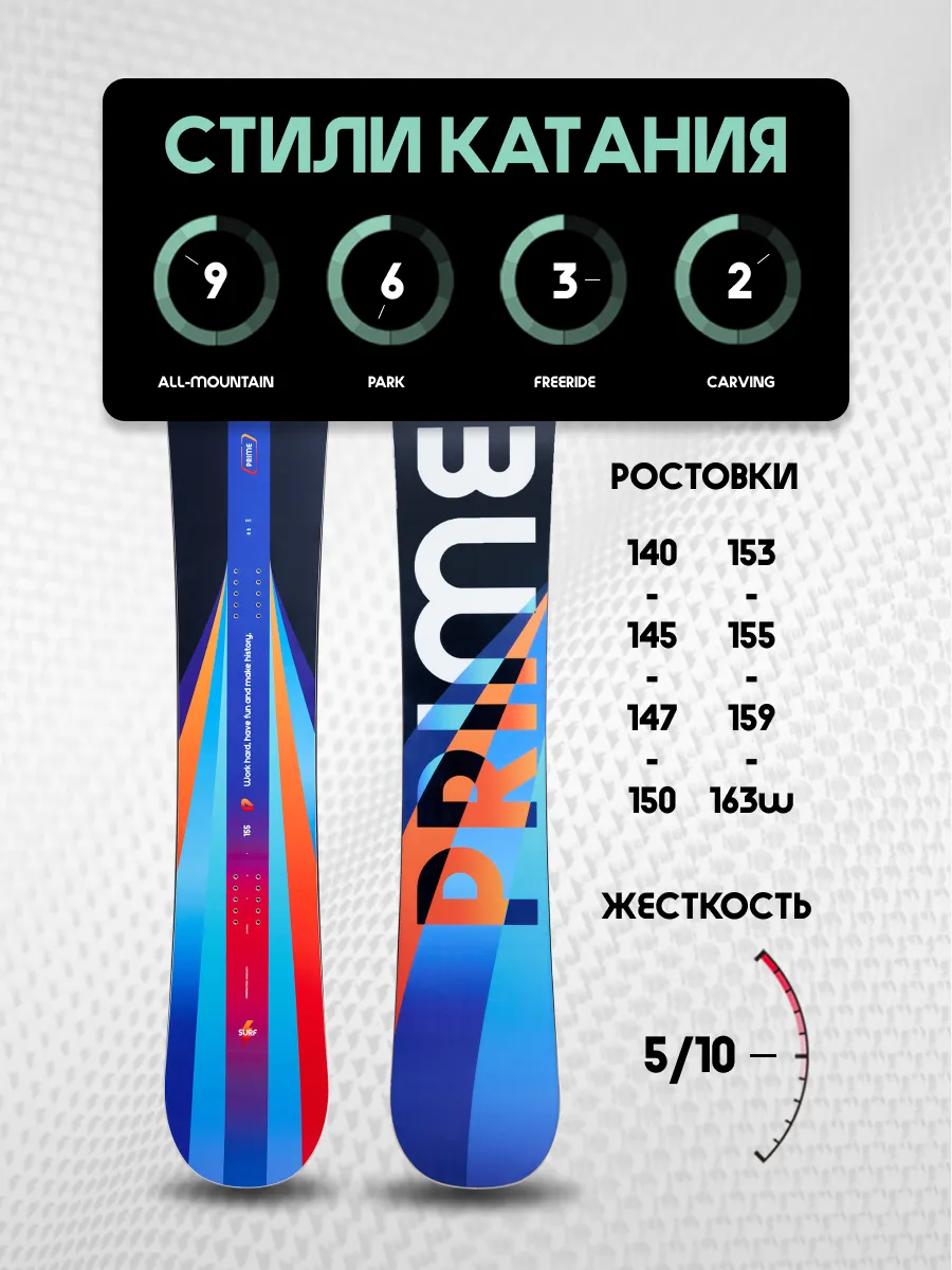 Встречайте All Mountain сноуборд — модель Surf, которая отражает дух и эстетику 80-х. С ней вам не придется отсиживаться на курорте или таскаться с запасными сноубордами. С помощью прогиба CamRock вы получите контроль над доской в парке, на трассе и за ее пределами. К тому же, внутри, под слоями триаксиального стекловолокна, находится сердечник из облегченного тополя, который не только уменьшает вес сноуборда, но и повышает контроль доски на любом споте.