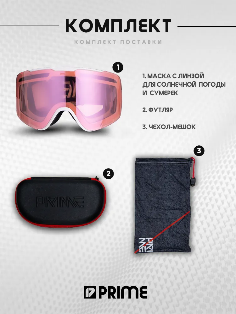 Кроме того, маска снабжена мешочком для переноски и чехлом.