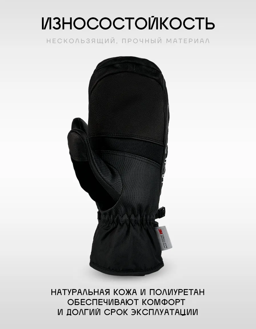 Варежки изготовлены из полиэфирного водонепроницаемого материала с мембраной в 10K, который эффективно предотвращает попадание снега и воды внутрь перчатки. Ладонь изготовлена из смеси противоскользящего полиуретана и настоящей кожи. 3D крой для полного комфорта со внутренним слоем из материала - THINSULATETM. Предоставьте своим рукам комфортные условия во время катания, сухость и тепло в течение длительного времени.