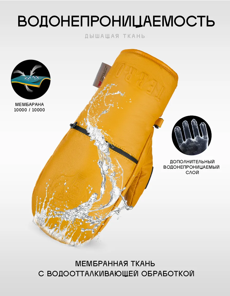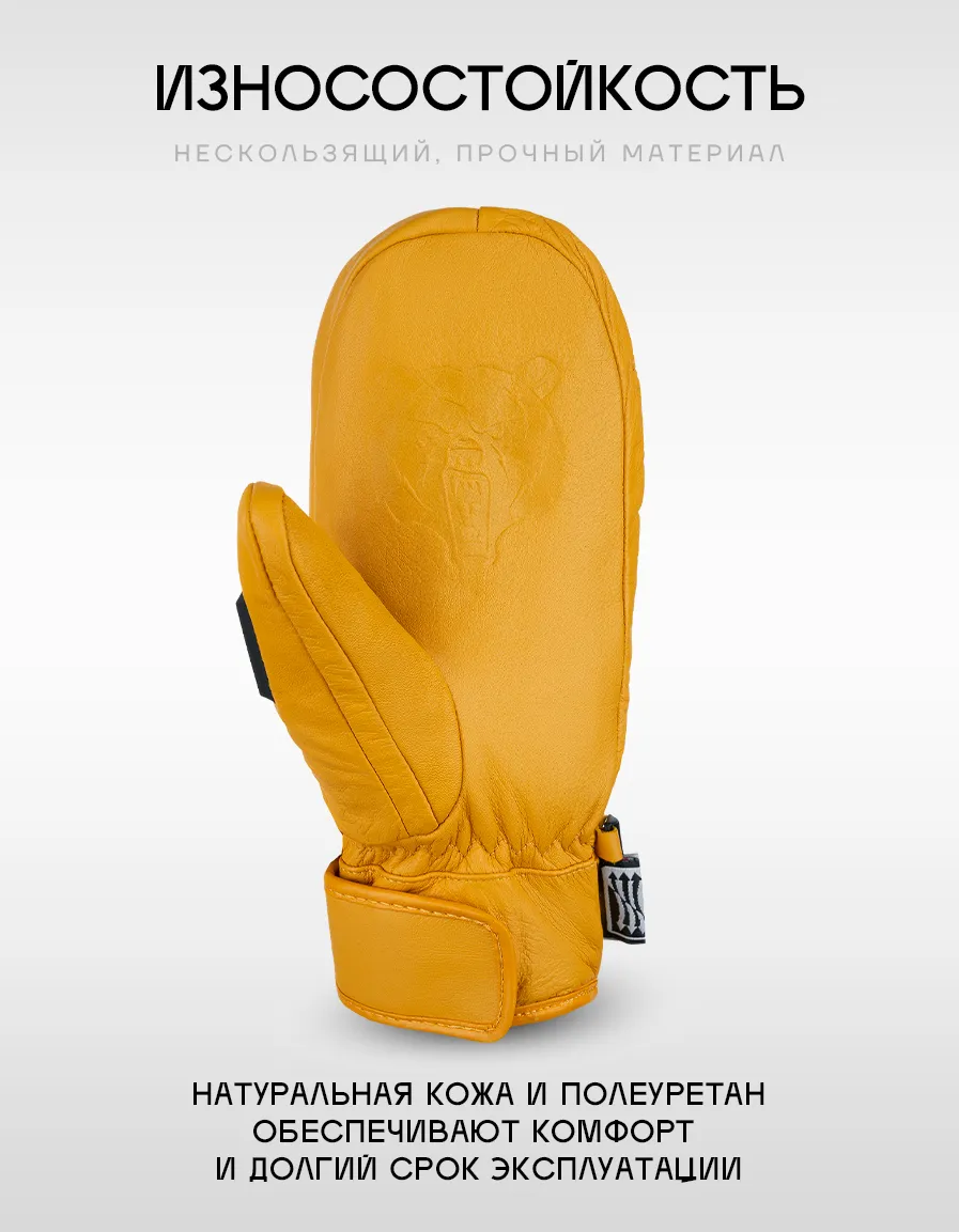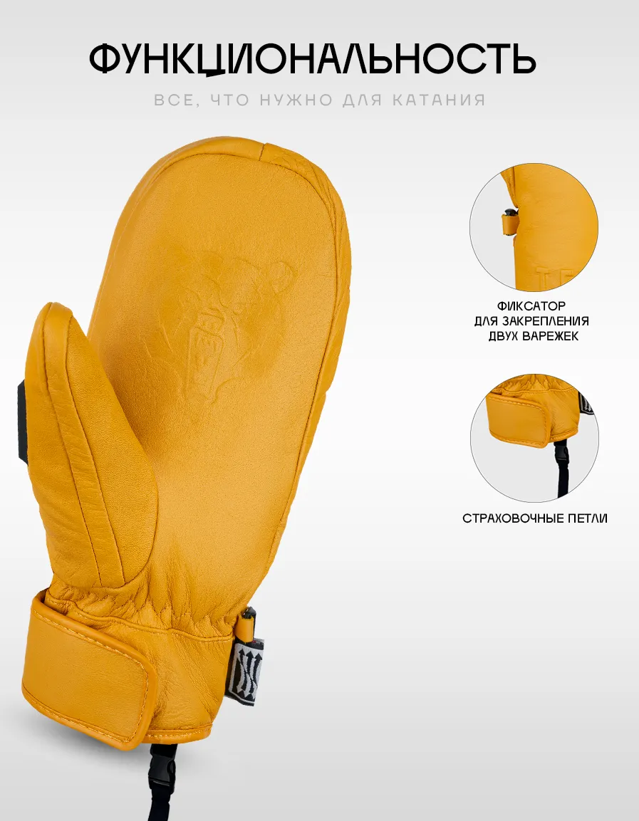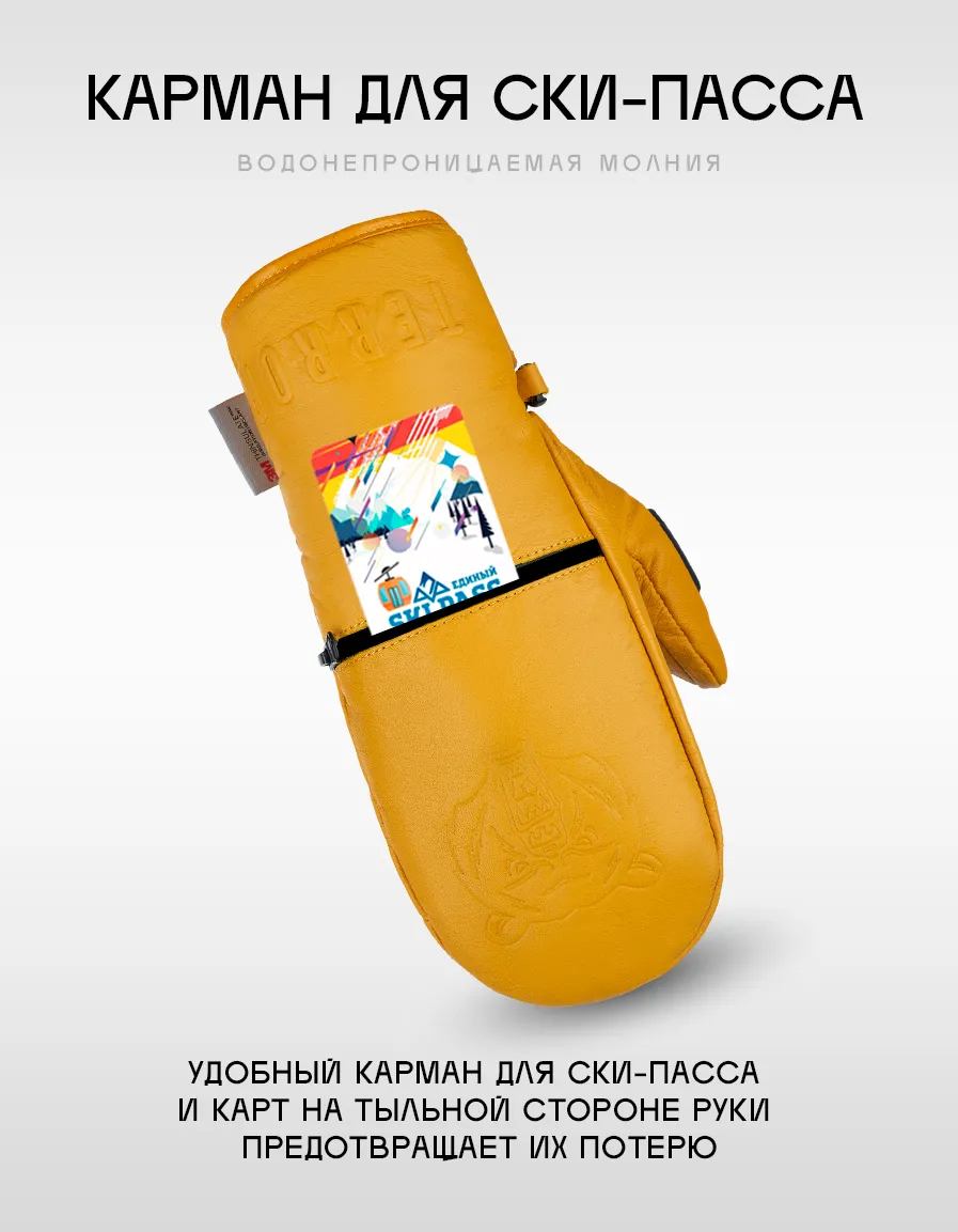 Серия варежек, сделанных из настоящей овечьей кожи: нежная, мягкая, надежная. Варежки снабжены кармашком, в который можно положить ски-пасс и с легкостью использовать для прохождения на подъемник, не вынимая из кармашка. Для удобства отчистки от обледенения или запотевания маски на большом пальце каждой варежки размещен скребок. Внутренник варежки выполнен ввиде перчатки, что придает больше комфорта и тепла.