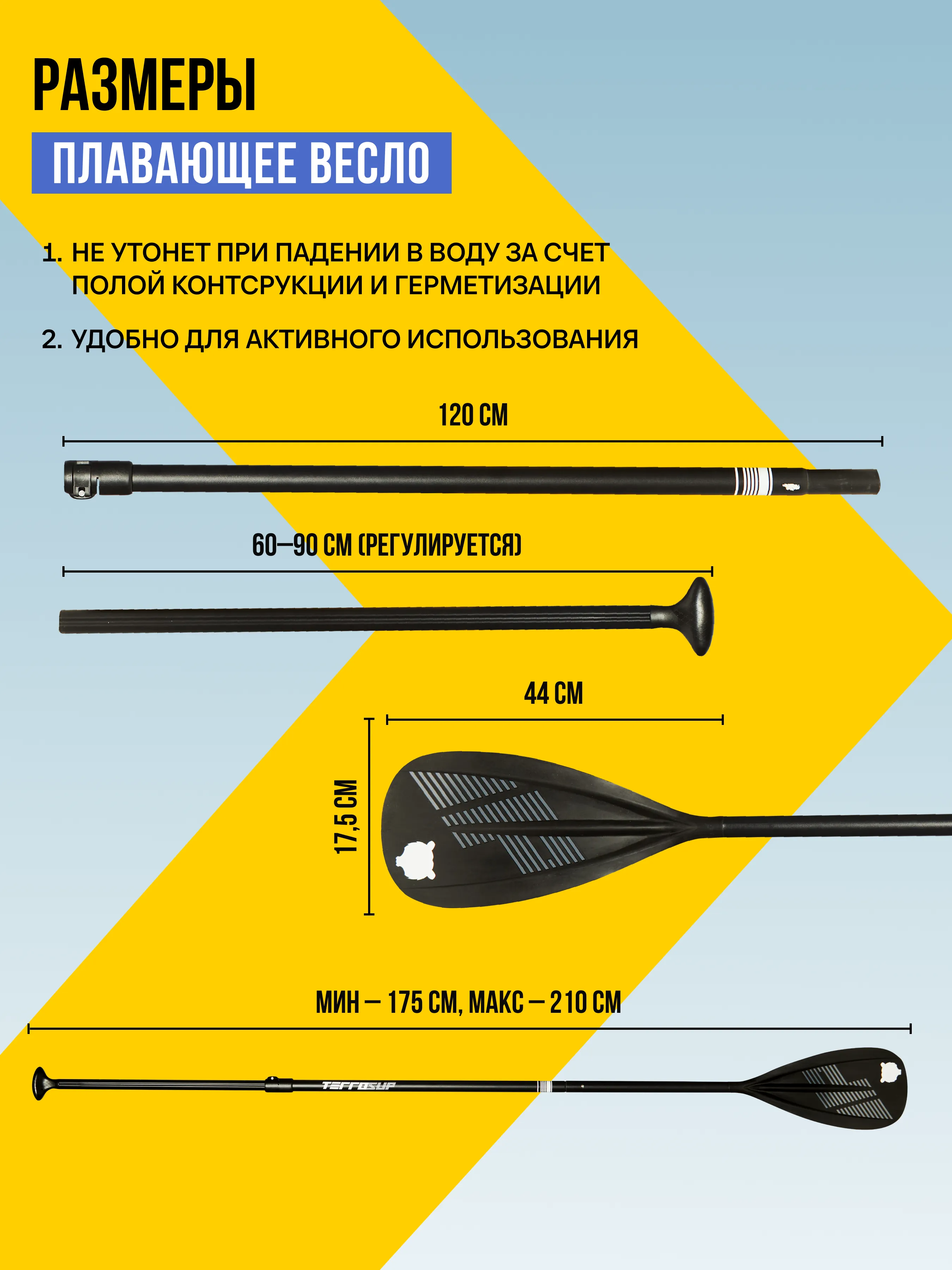Складное алюминиевое весло с PP вставками и неизменным логотипом бренда.