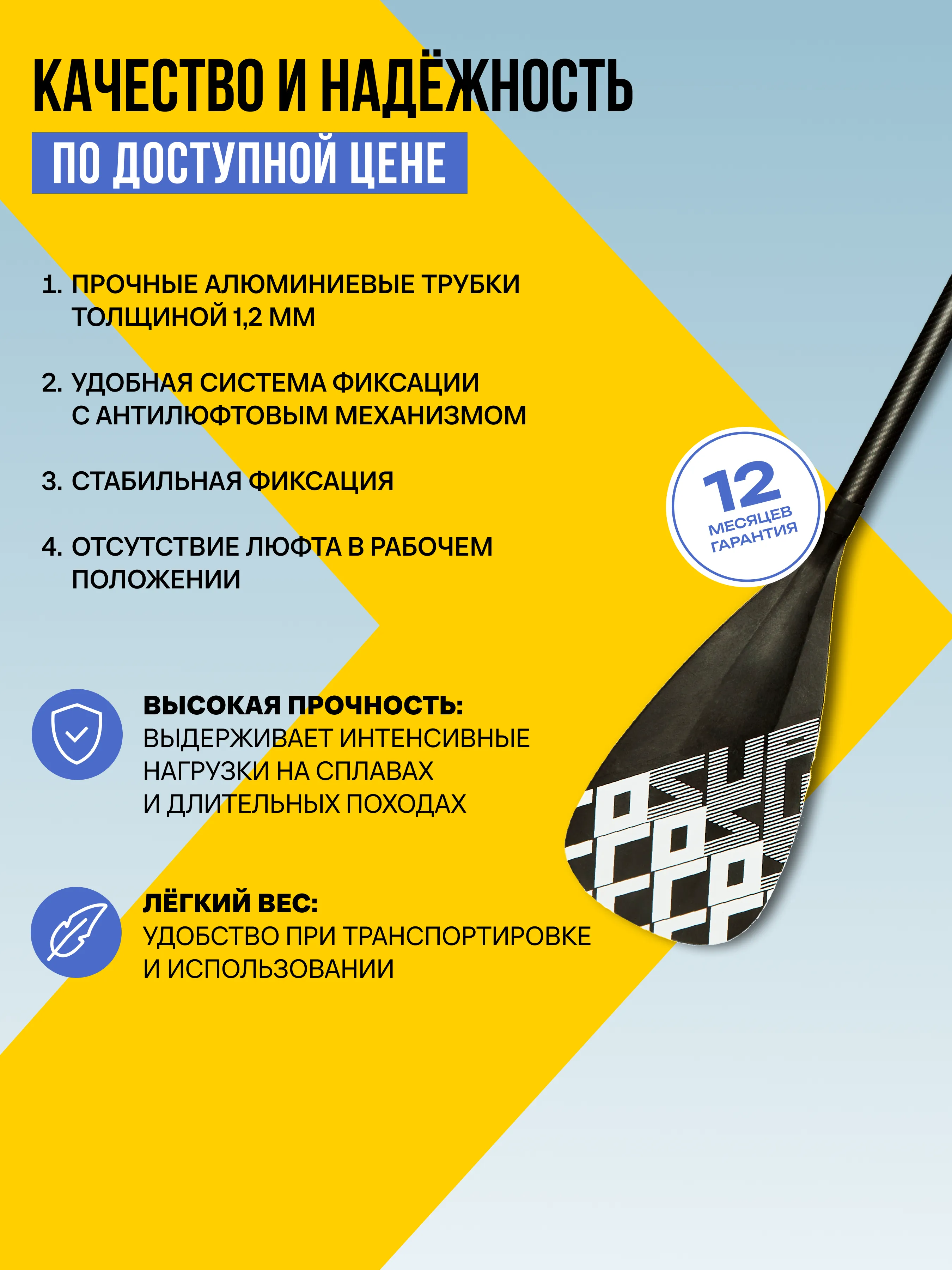Складное карбоновое весло с пластиковой лопастью.