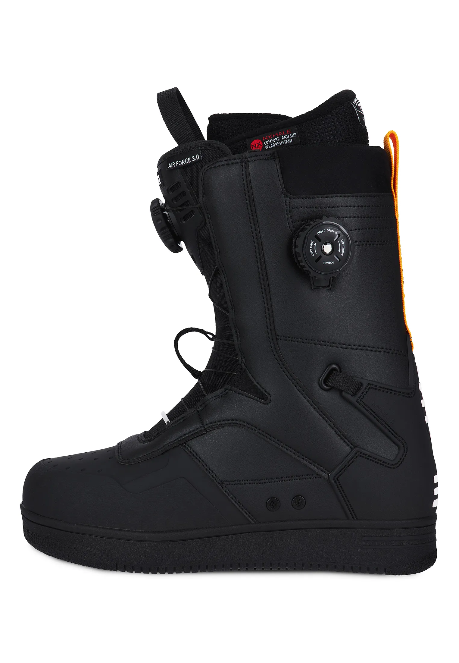 Мы переосмыслили нашу коллекцию сноубордических ботинок и представляем совершенно новую модель AIR FORCE, которая займет уверенную позицию в рейтинге лучших ботинок своего класса. Усовершенствованный внутренник и комбинированная двойная система шнуровки NXHALE обеспечит высочайший уровень комфорта! Вам больше не придется затрачивать долгое время на настрйку подходящего уровня фиксации, легко и быстро регулируя уровень затяжки верхней и нижней части ботинка в процессе катания. Качественный анатомический внутренник с поддержкой голеностопа, созданный из прочных материалов, плотно фиксирует ногу, обеспечивая контроль и отзывчивость в процессе катания. Удобная и надёжная шнуровка внутренника, демпфирующая удары подошва и анти-шок стелька дополняют образ идеальных ботинок для классического райдера.