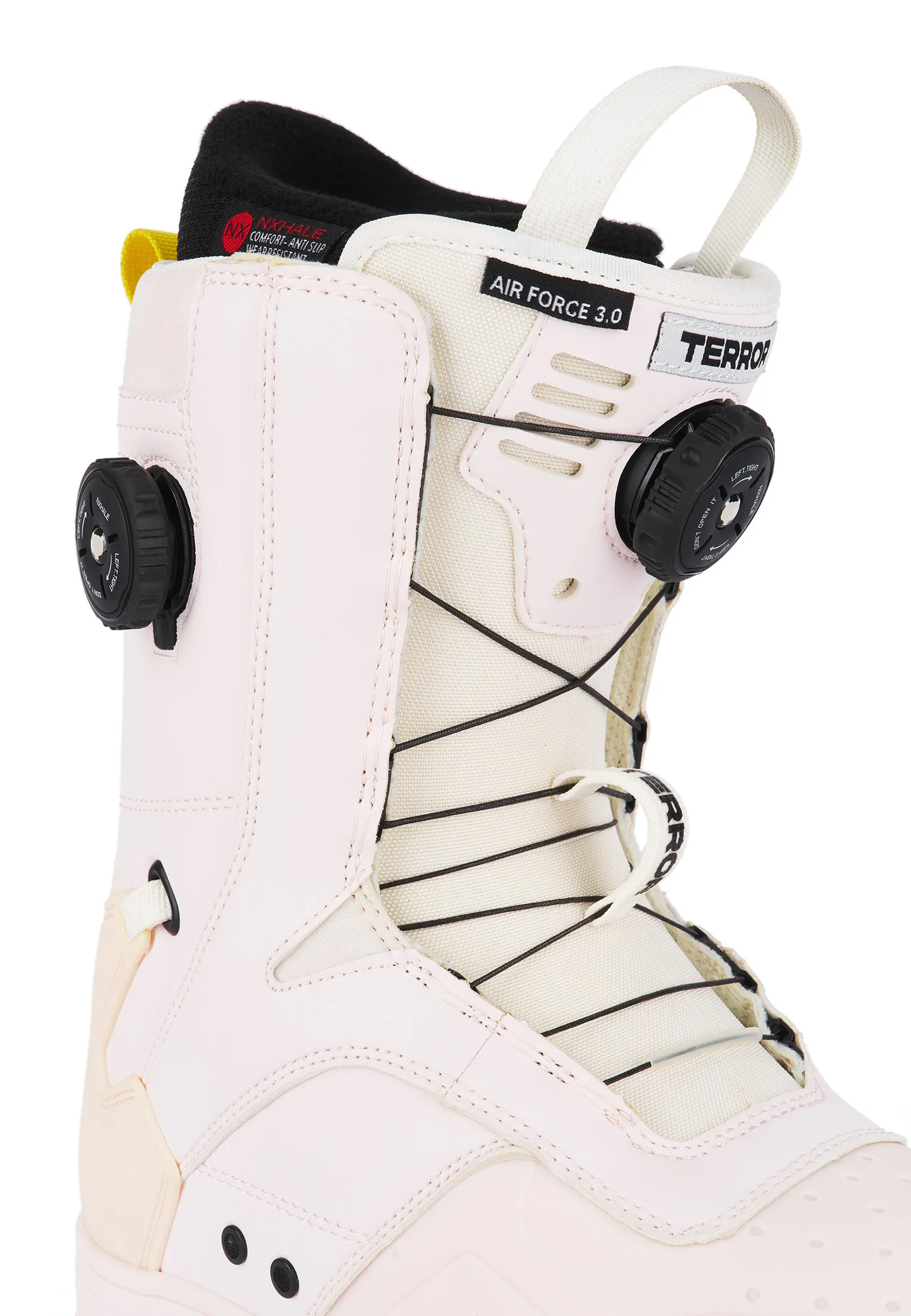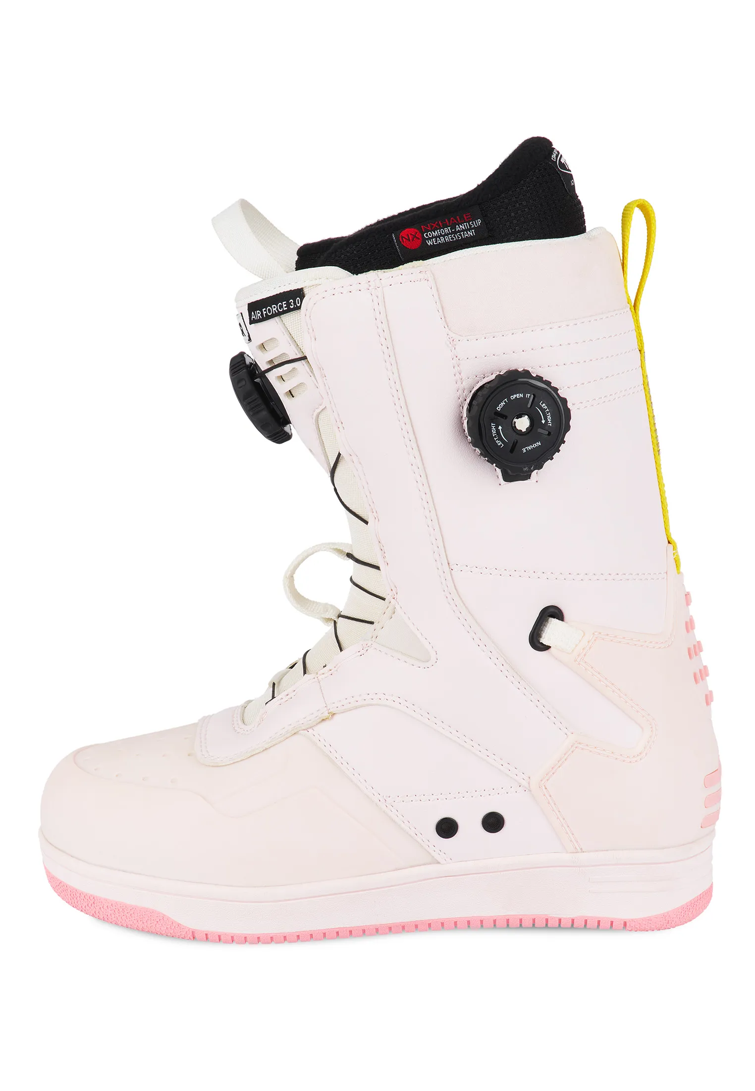Мы переосмыслили нашу коллекцию сноубордических ботинок и представляем совершенно новую модель AIR FORCE, которая займет уверенную позицию в рейтинге лучших ботинок своего класса. Усовершенствованный внутренник и комбинированная двойная система шнуровки NXHALE обеспечит высочайший уровень комфорта! Вам больше не придется затрачивать долгое время на настрйку подходящего уровня фиксации, легко и быстро регулируя уровень затяжки верхней и нижней части ботинка в процессе катания. Качественный анатомический внутренник с поддержкой голеностопа, созданный из прочных материалов, плотно фиксирует ногу, обеспечивая контроль и отзывчивость в процессе катания. Удобная и надёжная шнуровка внутренника, демпфирующая удары подошва и анти-шок стелька дополняют образ идеальных ботинок для классического райдера.