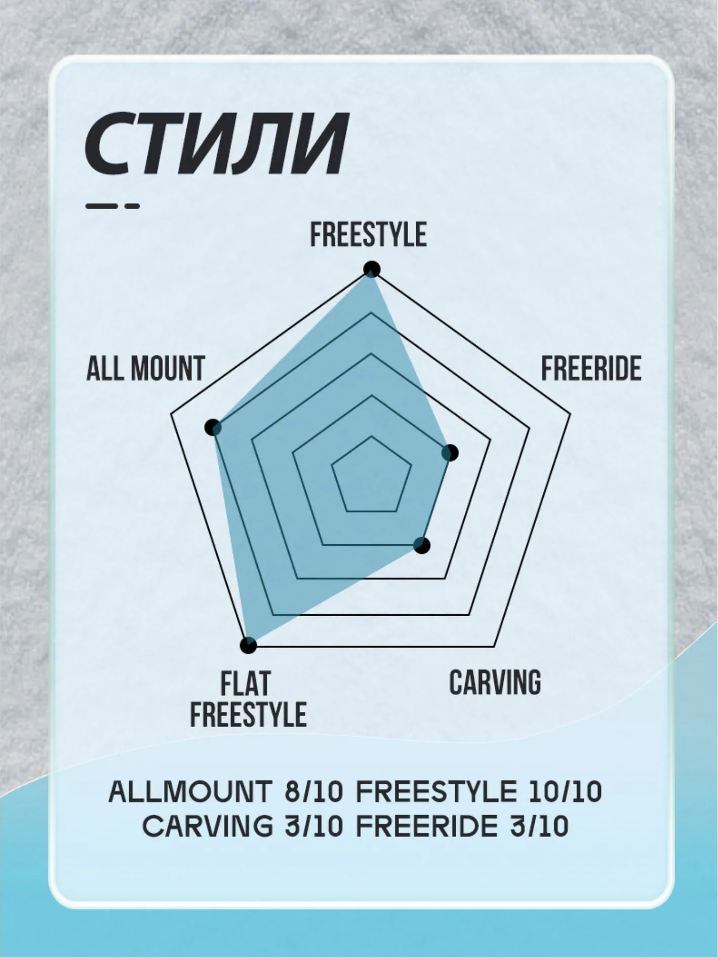 НАЗНАЧЕНИЕ - Freestyle - 50% All Mountain - 30% Freeride - 20%
