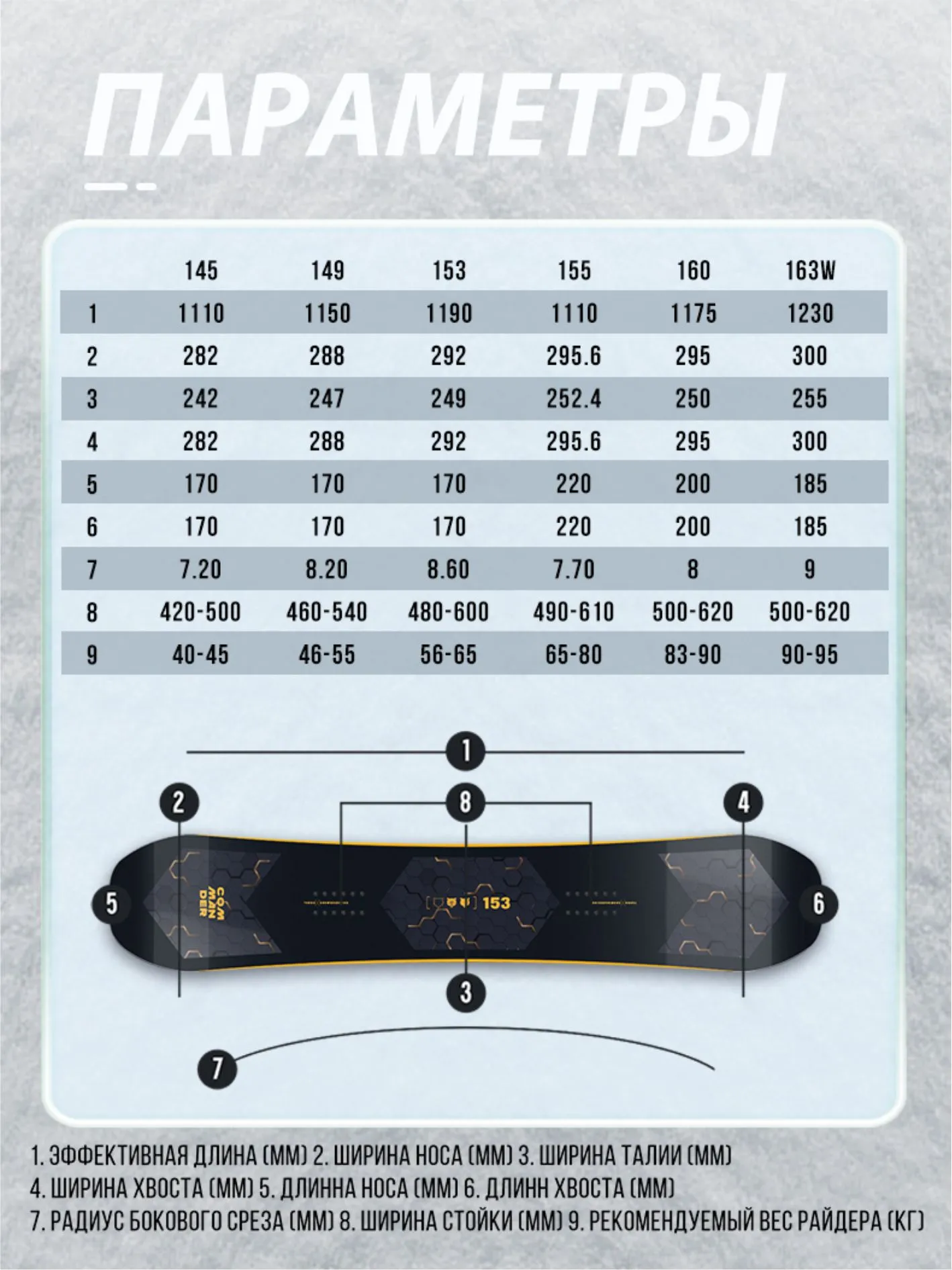 Мы создали универсальную модель Commander для катания в режиме нон-стоп, снабдив ее всем необходимым, чтобы начинающим и прогрессирующим райдерам было одинаково комфортно заниматься сноубордингом не только в парке или на подготовленных трассах, но и за пределами горнолыжного курорта. Например, сердечником из тополя, двумя карбоновыми стрингерами и триаксиальным стекловолокном, увеличивающим торсионную жесткость сноуборда, прочным топшитом из пластика PBT с защитой от ультрафиолета, а также спеченным скользяком. Кроме того, у Commander’a специальная геометрия носа и тейла Cut Edges, которая увеличивает контактную длину доски, но при этом не меняет габариты самого сноуборда.