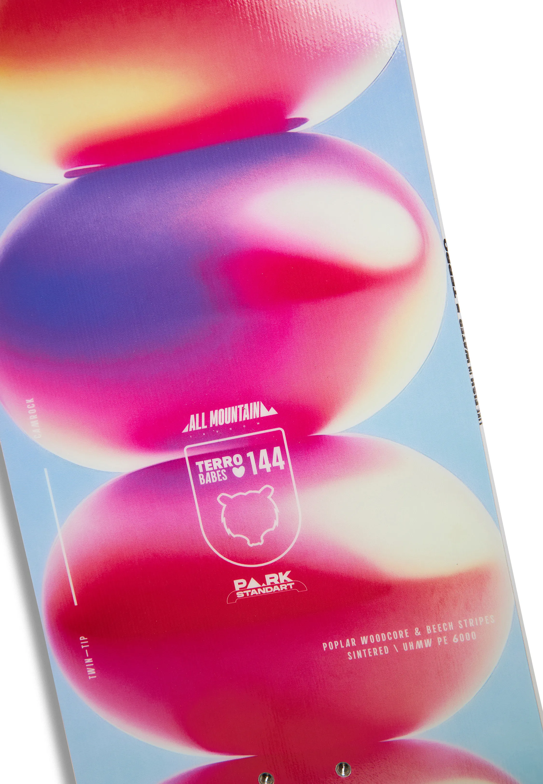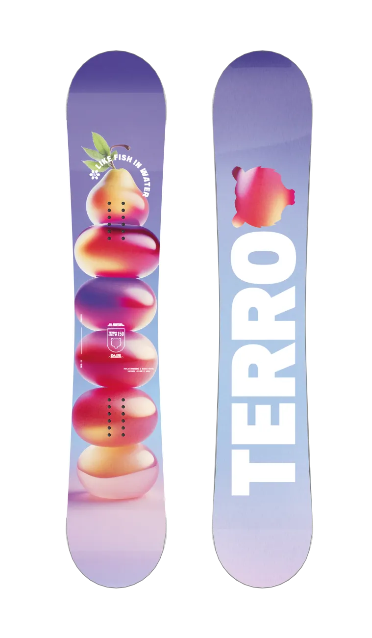 Инженеры Terro учли анатомические особенности женщин и создали Babes, чтобы сноубордистки получали максимальное удовольствие от скоростного катания по трассам и стильных трюков в парке. Для лучшего контроля доски мы использовали сердечник из высококачественного тополя с буковыми вставками, усиленный стекловолокном Tri-Ax и карбоновыми стрингерами, а для катания на обледеневших участках склона и в глубоком снегу — прогиб CamRock.