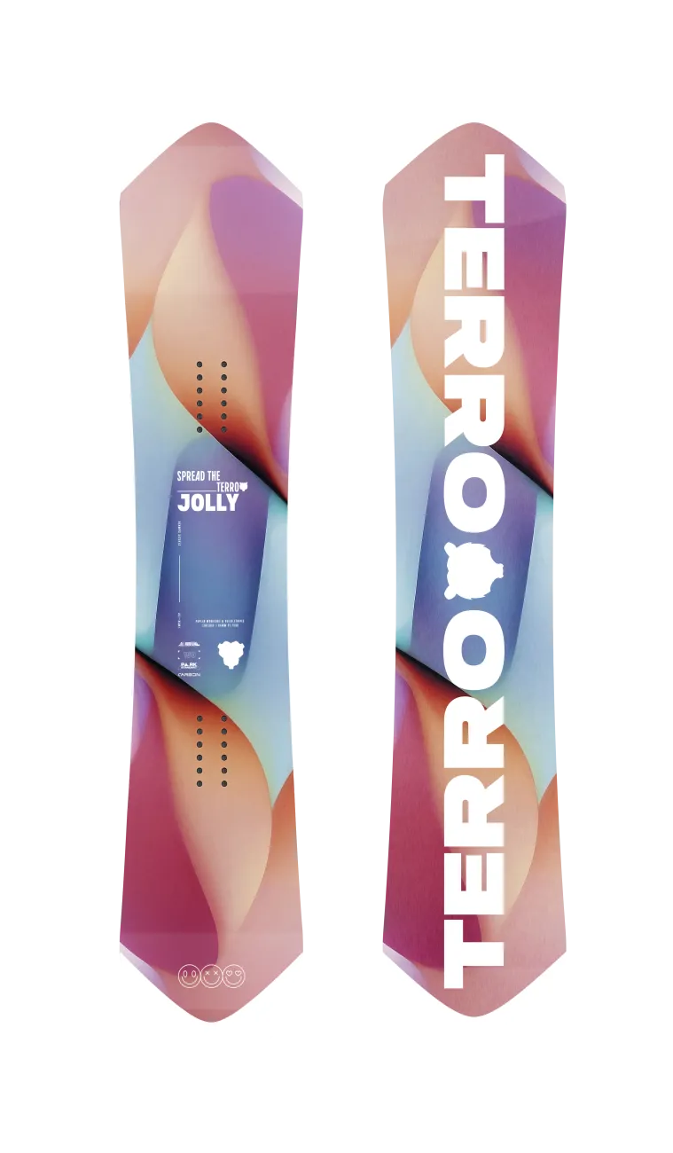 Каждый год, экспериментируя с геометрией и материалами досок, наши инженеры разрывают общепринятые шаблоны, чтобы создавать по-настоящему классные доски. Именно так, в результате многочисленных тестов и смелых решений, новую коллекцию Terro пополнила женская модель Jolly — доска с высокотехнологичной начинкой, оригинальным дизайном и уникальным шейпом. Благодаря прогибу Classic Camber, геометрии носа и тейла Cut Edges и невероятно легкому сердечнику из высококачественного тополя с бамбуковыми вставками, а также спеченному скользяку из высокомолекулярного полиэтилена сноуборд Jolly сделает ваш день ярким и незабываемым, ведь им легко управлять как в глубоком снегу за пределами курорта, так и на отратраченных трассах.